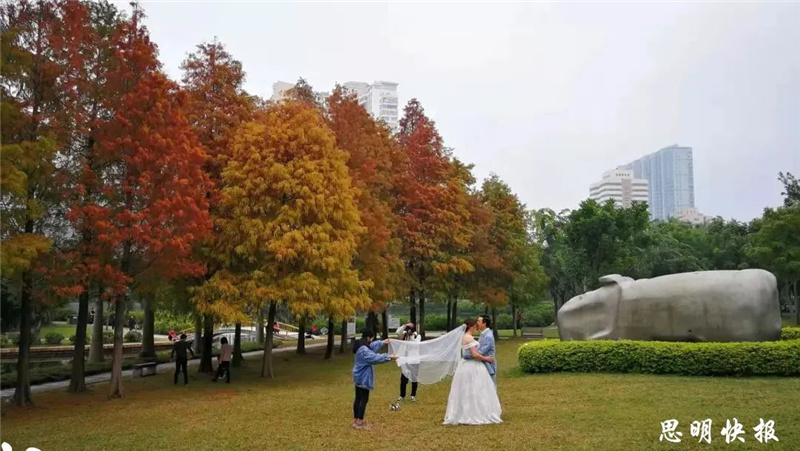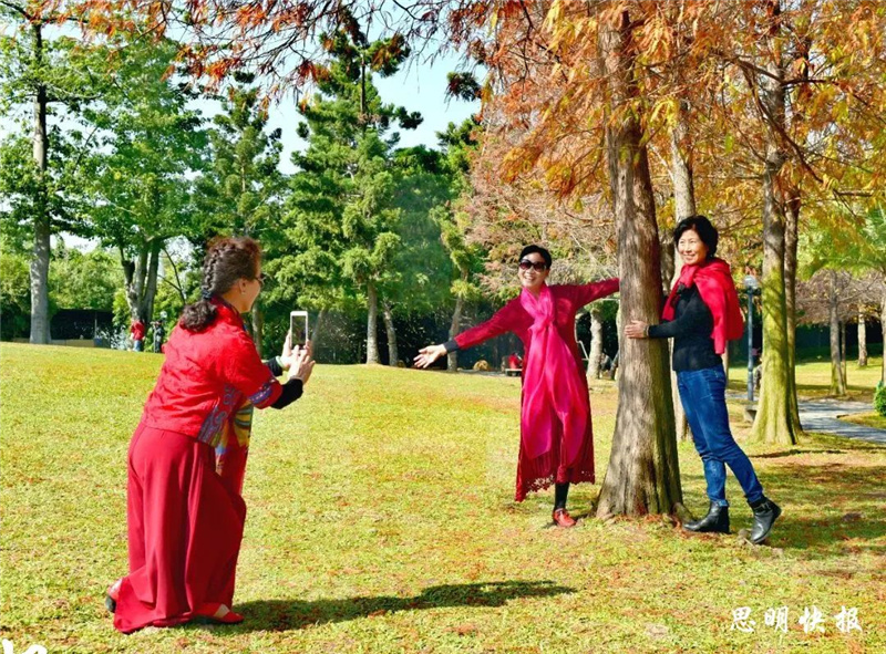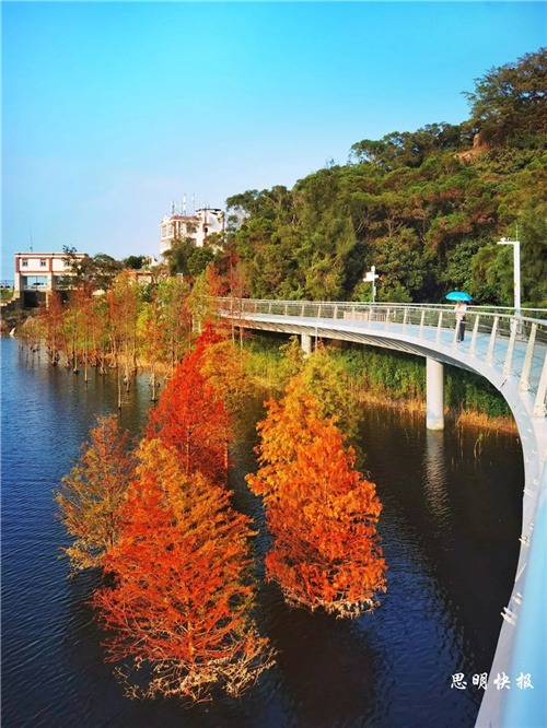 摄影|曾丽雪 温馨提醒 目前,只有厦门山海健康步道林海线东山环廊的落羽杉提前披上“秋装”。园博苑、南湖公园、五缘湾湿地公园等地的落羽杉还是绿的哟~ |