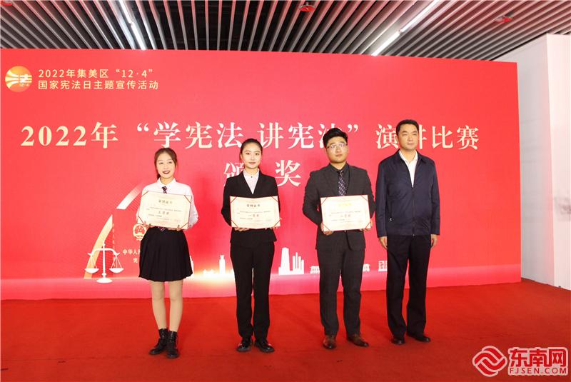 集美区政府副区长、公安分局局长杨晓峰为一、二、三等奖获得者颁奖。(东南网记者 李霖 摄) 杨晓峰表示,近年来,集美区积极探索青少年普法工作新形式,希望通过本次活动的举办,让更多新时代青年成为社会主义法治崇尚者和捍卫者,培养青少年学法、知法、守法的法治思维,为法治集美、平安集美的建设助力。未来,集美区将持续推出更多有温度、接地气、惠民生的普法、学法活动,将法律知识送到群众身边,让法治精神融入群众日常生活,“让宪法精神厚植人心,让法治信仰蓬勃生长,不断凝聚起更大更强的法治力量,谱写法治集美建设奋进新征程、建功新时代的崭新篇章!” 现场,厦门华锐双语学校青少年法治宣传教育基地揭牌仪式举办。作为集美区推动法治进校园的重要探索,以及厦门市首个法治宣传教育基地进国际学校的特色品牌,该基地将整合社会法治教育资源,推进法治教育与法治实践相结合,为积极构建学校、社会、家庭三位一体的青少年法治教育体系提供重要途径和载体。 今年10-11月,集美区举办第二届厦门市高校大学生法治辩论赛,今年的赛事规模进一步扩大,将参赛群体拓展到了全市高校,充分展现了厦门大学生的法治信仰和青春风采。当天,活动现场还为厦门大学、华侨大学、集美大学和厦门医学院四所高校颁发了第二届厦门市高校大学生法治辩论赛优秀组织奖。 据了解,集美区“宪法宣传周”活动将在本月举办“庭审旁听”“谁执法谁普法管理平台上线及培训”“宪法进宗教”“法治超市赠书”等一系列配套活动,并通过线上平台开展“宪法知识有奖问答”,邀请市民群众通过网上答题的方式学习宪法知识,共同弘扬宪法精神。 本次活动由集美区委宣传部、集美区委政法委指导,集美区委依法治区办、集美区司法局主办,厦门市天下集美文广传媒有限公司承办,集美区各普法成员单位协办。 |