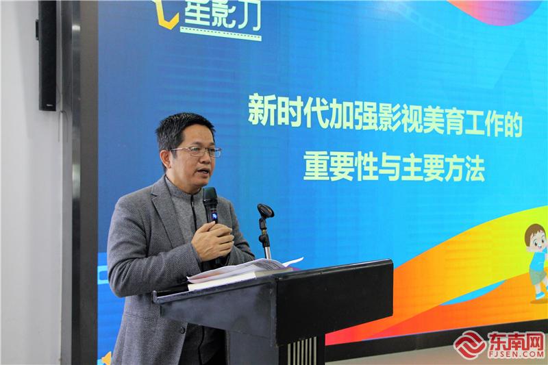 厦门理工学院影视与传播学院教授级高级编辑、硕士生导师陈俊杰开讲(东南网记者 李霖 摄)