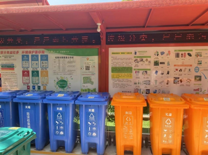 如往常一样,居民小王随手带上前一天晚上分好类的垃圾,锁门下楼,将垃圾丢进楼下对应的垃圾桶内,“诶!这个应该丢进‘其他垃圾’桶里面”,垃圾分类处的保洁员正指导其他居民进行垃圾分类投放。小王转身出小区大门,在小区附近的公交站点,坐上可以直达公司的公交车。在天源小区,低碳绿色的生活方式已经融入小区居民的日常。