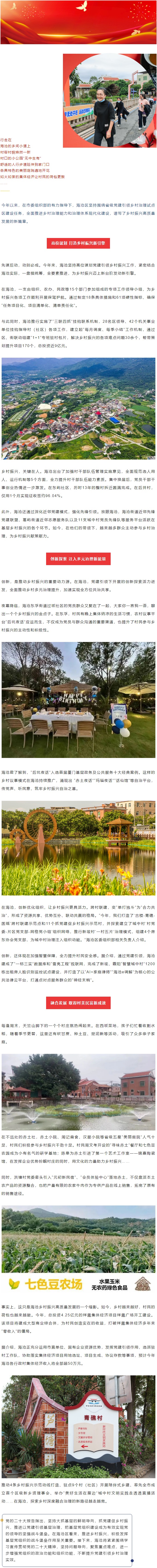 海沧区:党建引领 共治共享 村美民富好兴旺