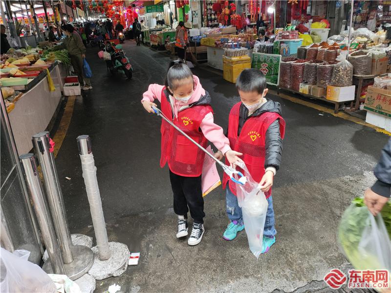 小志愿者们走进菜市场,开展洁净家园行动。(曾营社区新时代文明实践站供图) |