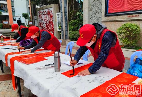 精彩的文艺表演(金山街道供图) 东南网1月17日讯(本网记者 夏菁 通讯员 林润钰)文艺演出、志愿服务、主题宣传……随着春节的脚步越来越近,近日,厦门市湖里区金山街道各社区依托新时代文明实践站为载体,充分发挥“近邻”力量,举办了精彩纷呈的活动,为群众送上各式各样的“文化大餐”,让群众收获满满的幸福感。 载歌载舞 迎新纳福 欢乐的歌儿唱起来,激情的舞蹈跳起来,金山社区、金海社区分别举办“礼赞二十大 永远跟党走”迎新春文艺汇演晚会、社区文化艺术节汇演暨2023年迎新文艺晚会。 精彩的演出连番登场,表演者们精湛的演出深深吸引了辖区居民群众,赢得阵阵掌声。热闹的场面处处洋溢着新春气息,年味满满。 湖边社区、金安社区开展“书写春联送祝福”活动,一副副红彤彤的春联,传递着迎新春的喜庆,一个个“福”字,饱含着人们对美好生活的热盼。