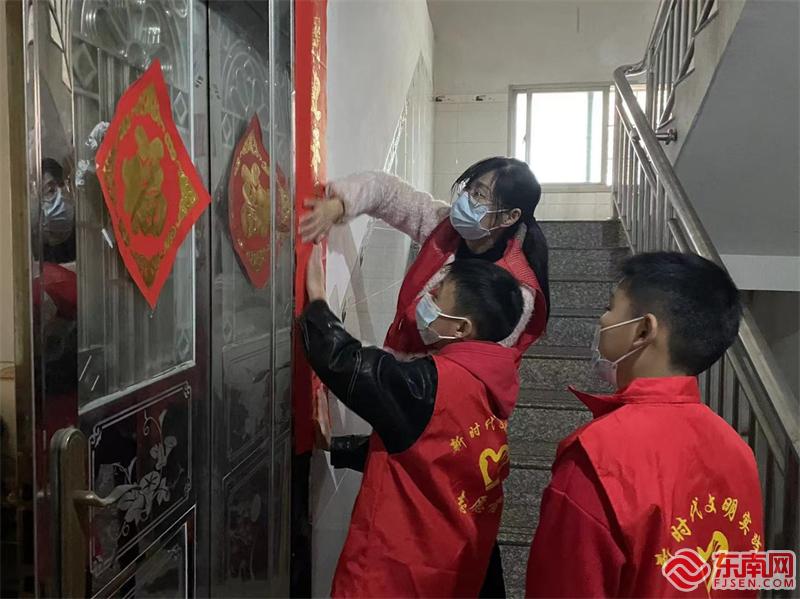 志愿者为独居老人粘贴春联(陈燕贞 摄) 关爱社区困难群体 大扫除是人们迎接新年的一个重要习俗。然而,对于空巢老人来说,擦洗窗户、清洗家具成了一大难题。为了帮助老人们干干净净迎新春,铁山社区新时代文明实践站组织“铁家军”志愿服务队于节前入户探视社区空巢老人,帮助老人开展大扫除,通过拉家常的方式,详细询问老人的日常生活及存在的困难,并送上了新春祝福。 营造浓厚节日氛围 为落实省委宣传部关于做好兔年春节前后“福”文化宣传推广工作,不断扩大“福”文化品牌影响力的要求,营造温馨有爱、文化气息浓郁的传统节日氛围,日前,上头亭社区新时代文明实践站组织“亭美”志愿服务队开展“贴春联,送祝福,迎新年——文化进万家”文明实践志愿服务。 “万事如意万事顺,满堂吉祥满堂春”“千祥云集家昌盛,百福临门万事兴”……活动当天,志愿者们分队入户,贴春联、“福”字,拉家常、话团圆,为社区特殊困难群体送上新春祝福,充分挖掘春节辞旧迎新、阖家团圆、国泰民安的文化内涵,打造“福”景,让“福”文化融入群众的生活中。