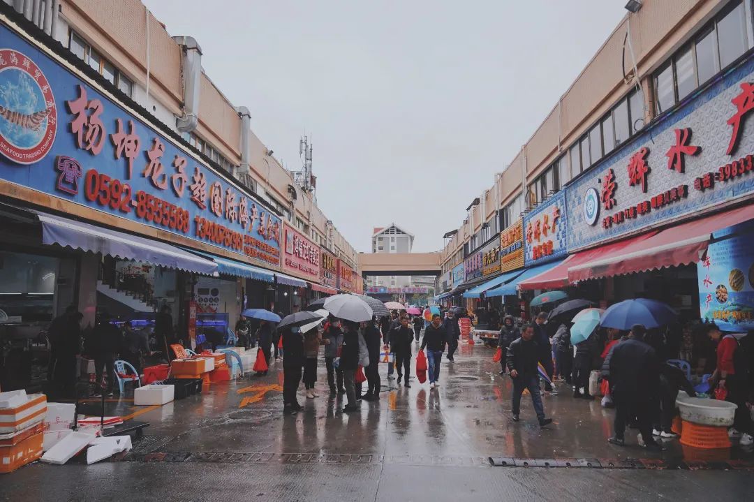 厦门夏商国际水产交易中心人声鼎沸,市民纷纷采购海鲜满载而归。