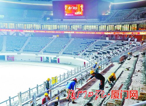 厦门新体育中心凤凰体育馆:施工人员坚守一线抢工期