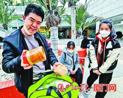胡先生向记者展示“妈妈牌”辣椒酱。(记者 张玉榕 摄) 厦门日报讯(记者 张玉榕 程午鹏)连日来,不少人踏上返程之路。记者来到厦门北站走访看到,返厦人群都提着大包小包。他们的返程行囊里装了不少家乡土特产,有老母亲亲手制作的辣椒酱,有地瓜干,还有土鸡……这些“特别行李”背后,更多的是家人的不舍与满满的爱。 杀鸡摘菜晾晒地瓜干 父母的爱装满两麻袋 正月初五下午3时许,厦门北站出站口人来人往,有人拖着行李箱急着打车,有人坐在休息区休息,还有人一出站,就迫不及待地跟家人视频报平安:“妈,我刚到厦门!过两天就得上班啦!” 人群中,记者一眼就看到了罗先生一家。“孩子,你要牵好妹妹的手哦,爸爸现在得拿行李,腾不开手。”罗先生抡起麻袋,用力一甩,扛到肩上,大步向前。罗先生的妻子弯腰推着一个大行李箱,一手还得扶着箱子上架着的另一个麻袋,两个女儿则蹦蹦跳跳跟在父母身旁。 罗先生是龙岩人,他们一家已经连续两年没回家过年了,今年回家过年可把家里老人高兴坏了。春节期间,老人就开始为罗先生准备返程行囊,亲自晾晒地瓜干,宰杀土鸡,下地摘菜,硬是装满了两麻袋。“我还真没称过这些行李一共有多重,反正我一个人是拿不动。”罗先生说。 罗先生感慨,别看他已为人父,可是在父母眼中,自己仍是个孩子,父母总想把最好的东西留给孩子,他的新年愿望也是希望父母保持身体健康。 一套保暖睡衣 让她感受到母爱的温暖 春节假期接近尾声,向向(化名)乘动车从老家合肥回到厦门工作。提起返程时所带的行李,她一下子来了劲。 “作为合肥人,我的行李少不了糯米圆子、山芋圆子等家乡美味,但是我更想分享的是行李箱中的一套保暖睡衣。”向向说,自己平时的睡衣以睡裙为主,但体感总是不够暖和。这次春节回家,她惊喜地发现,妈妈为她备好了一套波点珊瑚绒睡衣。 “这套睡衣是我妈年前在直播间下单的,春节期间我常常穿着这套睡衣在家中晃悠,感觉十分暖和。”向向说,返程时,她特意把睡衣带回了厦门,打算作为自己的过冬睡衣,这套睡衣能让她感受到母爱的温暖。 母亲亲手做的辣椒酱 他从来都吃不腻 胡先生是漳州人,来同安经营餐饮店已有10余年。为了尽早开业赚钱,他早早带着妻女返厦。在等候网约车的间隙,他们一家热情地向记者晒“家乡味道”。 “有鱿鱼干、芭乐、辣椒酱、红辣酱、海苔……”胡先生说,每年春节,他们一家都会回去看望一下家中的老母亲,而这次的行李就是老母亲为他们亲手准备的。当他打开手中提着的行李袋,记者先看到一大罐手工制作的辣椒酱。 胡先生笑嘻嘻说道:“我母亲年前就开始做这罐辣椒酱了,我从来吃不腻母亲做的辣椒酱,它的味道对我来说十分亲切。” 胡先生14岁的女儿抱着一盒红彤彤的年货,坐在父母身旁。“奶奶还给我备了一大盒糖果!”女儿说,这个春节她过得很充实,除了陪和蔼可亲的奶奶,她还结交了新朋友。 |