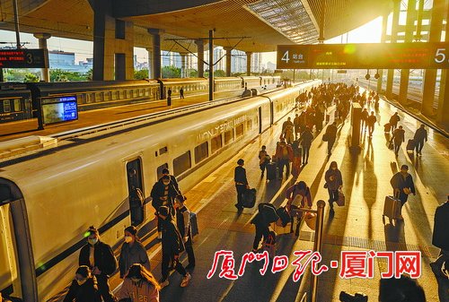 厦门北站的旅客伴着夕阳余晖踏上站台。(记者 林铭鸿 摄) 厦门日报讯(记者 程午鹏 谢嘉迪 林钦圣)春节假期结束,人们纷纷踏上了返程旅途。1月28日(正月初七)以来,厦门迎来节后返程高峰,交通枢纽出现大客流。昨日,记者走访铁路厦门北站、厦门站了解到,市交通运输部门已增派人手、增加信息化手段,引导旅客接驳城市公共交通,保障抵厦旅客平安有序出行。 厦门北站: 简化安检流程 方便旅客出站 昨日下午5时许,载有六百余位旅客的D3205次列车抵达终点厦门北站,外来务工人员陈科是这批返厦大军中的一员。 “今年春节带两个小朋友一块回了南平老家。假期结束,眼看临近开学,我就先把孩子们一起带来了。”陈科父子三人,行李也真不少——两个孩子的书包再加上行李箱、背包、行李袋……大小包袱在过安检扫描仪后,陈科还要像“对账”一般逐一检查行李是否遗漏。陈科坦言:“一人带两娃,过安检可不太轻松。” 好在今年春运期间,厦门北站开通便捷换乘通道,旅客简化安检流程——从厦门北站出站层可直接进入地铁1号线,无须再次进行安检,从列车站台到地铁站台全程步行只需4分钟,方便了携带大件行李或多件行李的旅客通行。 “晚上10点左右,还有一批人流高峰,我们已提前和交通部门进行联动,动态调整公交、出租等公共交通运力,满足抵站旅客接驳换乘需求。”厦门北站值班站长吴振斌表示,除了搭乘网约车、巡游出租车离站外,推荐市民选择公交、BRT、地铁出行。 数据统计,昨日厦门北站共发送旅客39450人次,到达旅客64817人次,随着春运逐渐步入尾声,车站到发客流量预计将逐步减少至日常工作日水平。 厦门站: 动态显示换乘信息 满足旅客实时选择 昨日下午5时20分许,众多拖着行李的旅客走出闸机,进入车站南、北广场。 在南广场巡游出租车等候区,已有10多辆打着“空车”灯的车辆在此等候,旅客在安保人员引导下乘车离开。等候区有多个屏幕显示“厦门站——出租车乘客引导”信息,上面实时显示了候车区的空车数量、旅客数量,以及预估等待时间,方便旅客判断是否选择乘坐出租车,或者换乘其他公共交通工具离站。 记者留意到,该显示屏大多数预估等待时间为1分钟,到傍晚6时30分,随着旅客增多、出租车减少,预估的等待时间逐渐拉长到7分钟,部分旅客选择到一楼乘坐网约车离站。 车站北广场外的BRT、地铁入口处,也有一块大屏幕显示“BRT换乘地铁实时信息”,上面显示了途经火车站的BRT、地铁车辆到站的实时信息,大部分等待时间在9分钟以内。在自助购票机前买票的游客张女士说,他们从江西来厦门旅游,看了换乘信息后,还是选择在交通高峰期乘坐地铁去酒店。 记者走访发现,除了通过信息化手段引导旅客接驳城市公共交通出行,交通运输部门还在公交、地铁以及网约车接驳处增加安保和巡查人员,实时掌握客流状况,调派巡游出租车、网约车等公共交通运力赶赴现场,保障返程旅客出行。 【相关】 公共交通衔接配合 助力市民畅达出行 面对节后返程大客流,市交通运输部门表示,将充分发挥公交兜底保障、地铁大运量运输、出租车机动灵活、客运应急响应等多种运输方式的特点,优化城市公共交通与火车、飞机等对外交通的衔接配合,全力保障广大市民乘客出行平安、返程顺畅。 |