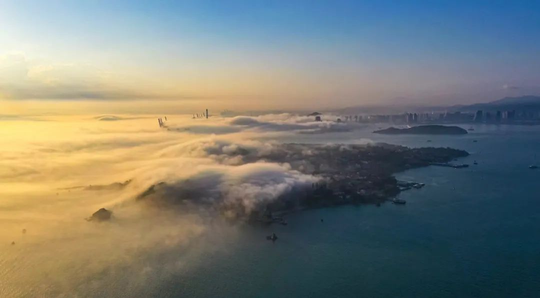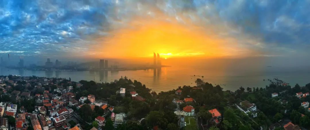 从成功到成功,奔跑在诗和远方的思明,万丈霞光浸染于此,像金色颜料倒进了大海,给白鹭鸟披上了锦衣,为凤凰木渲染了金边。
