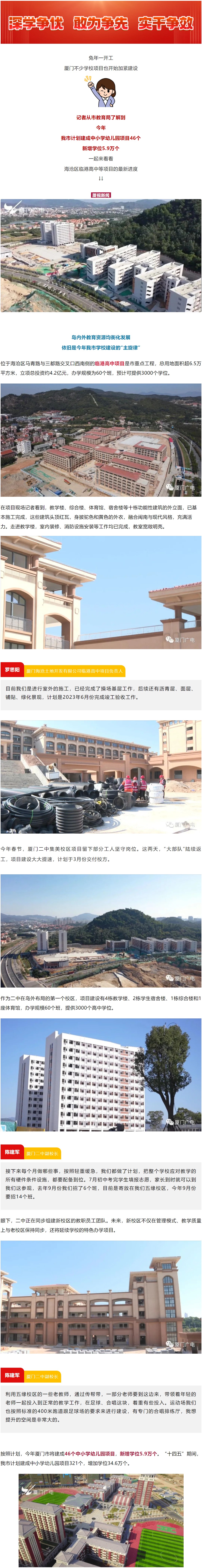 海沧区临港高中项目拟6月竣工 预计提供3000个学位