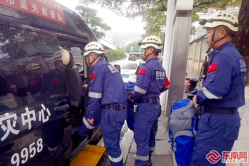 厦门蓝天救援队队员登车出发准备前往机场(东南网记者 刘玮 摄)