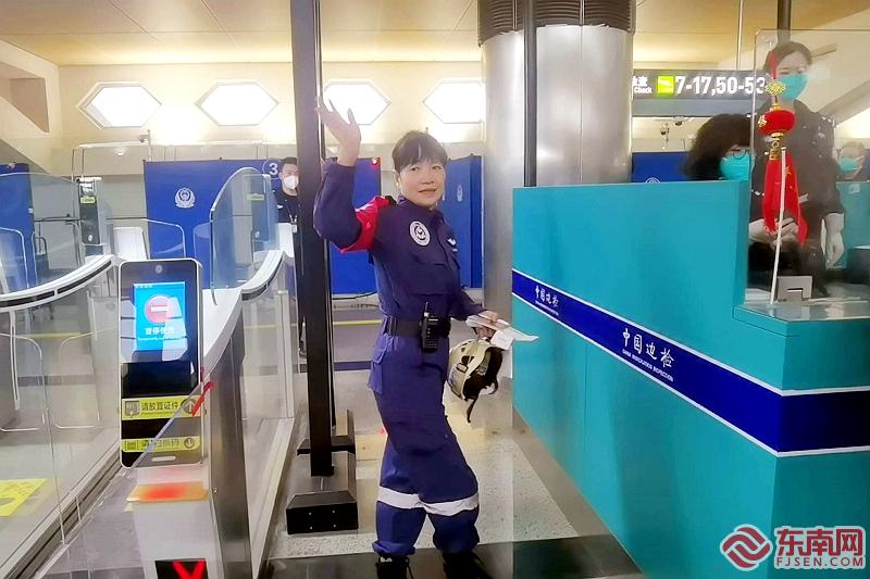 厦门蓝天救援队队长水草挥别众人(东南网记者 刘玮 摄)