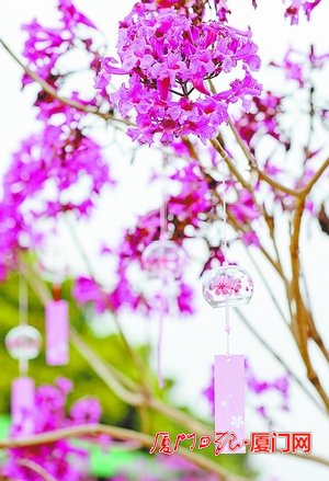 集美溪西村紫风铃。 (本组图/记者 张奇辉 摄)