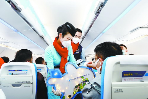 首航乘务员为旅客提供贴心服务。(贺晟 摄) 厦门日报讯(记者 徐景明 谢嘉迪 通讯员 高英发)昨天是厦航空客A321neo飞机首航日,厦航在高崎机场候机楼、机坪及客舱举办主题活动。空客A321neo飞机有哪些人性化设计?记者昨日乘机体验。 在候机楼内,首航旅客通过“鹭展新姿 航向未来”主题专柜值机,在登机口观赏了厦航乘务员带来的快闪舞蹈,分享了美味的首航蛋糕,还领取了首航伴手礼。 “能以这样的方式与厦门相遇,真的很惊喜。”从三亚到厦门中转的冯女士碰巧遇到此次厦航空客A321neo飞机首航,收到了伴手礼。谈到对于厦门的印象,冯女士给予很高的评价。她表示,虽然只是旅途中短暂的中转,但从机场站务员、飞机乘务员的热情服务中,都能感受到厦门这座城市的活力与包容。 记者体验发现,无论是外观还是客舱内,一眼乍看上去,厦航空客A321neo飞机与该公司的波音737系列机型并无太大差异,但是细节上,空客A321neo还是有很多特别之处。 比如,放行李时,行李架让人感觉比较宽敞,一般的登机箱可以轻松放入,荷载达48公斤。落座后,小桌板分上下两层,上面的为书报专用托架,下层是常见的小桌板。在脚部位置,还设置了发着绿光的两组充电口,接口分别是USB和type-C。 在航班上,厦航精心准备了美味餐食,旅客们还收到了首航证书、纪念卡片以及空客定制洗漱包、鸭舌帽等纪念品。 【点击】 空客A321neo飞机有啥特点? 飞机个头大 能载更多乘客 空客A321neo飞机的neo,英文全称为New Engine Option(新发动机选项),也就是说它配备了升级版的发动机。同时,该机型也比空客A320、波音737-800等常见机型都长,属于中型飞机里的大个头,这也使其能搭载更多乘客。 超大行李架 放置行李更轻松 厦航空客A321neo飞机采用“空客灵活客舱”,为旅客带来如同宽体机般的舒适体验。全舱208座(商务舱8座,经济舱200座),全部选装符合人体工学的“中国智造”飞机座椅,宽敞舒适,让旅客在万米高空得到充分休息和放松。此外,“超大行李架”在空间和容量上分别跃升40%和60%,让旅客轻松放置行李,无忧出行。 油耗降低20% 噪音降低50% 作为全球首家支持联合国可持续发展目标的航司,厦航在空客A321neo飞机上选装了CFM公司的LEAP-1A发动机,能够降低20%的燃油消耗和二氧化碳排放,同时降低50%的噪音,创造低碳、安静的飞行空间。 搭载国产娱乐系统 洗手间更智能 飞机搭载了国产机载娱乐系统,能够提供更加本土化、智能化的视听享受和前所未有的互动娱乐场景,厦航为新机型全新定制的、融合歌仔戏、南音、漆线雕等独特元素的空客安全演示视频同步上线。 此外,新型厨房、智慧洗手间等设备能够照顾到不同人群的需求。 |