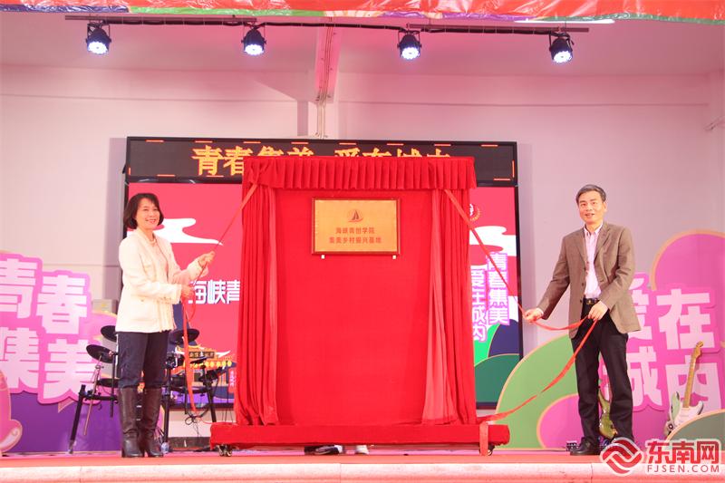 海峡青创学院集美乡村振兴基地揭牌(东南网记者 李霖 摄) 聚焦乡村振兴“集美模式” 近年来,集美区努力打造台胞台企登陆第一家园“第一站”,成立区级“两岸融合发展中心”,成立“集美台青创基地联盟”,建设两岸青少年发展中心,积极探索两岸青年助力乡村振兴新模式,引导两岸青年人才在农村广阔天地大显身手,可谓硕果累累。 开幕仪式现场,海峡青创学院集美乡村振兴基地正式揭牌,两岸大学生乡建乡创实训实践基地授牌,“好久不见·两岸大学生实训”计划正式启动。据悉,今年暑期将有三所台湾高校大学生前来集美实习,共赴乡村振兴。 当天,台青创业项目——新媒体团队“菲语台”、台式早午餐供应链“亚米轩”、文创集合空间“野行”、香文化和产品研发推广“富山香堂”、厦门天洽餐饮管理有限公司天福子品牌“放牛斑”与黑猫两岸青年文旅基地正式签约,入驻后溪城内,为当地创新发展注入新的活力。 “富山香堂”项目负责人、来自台湾高雄的曾柏铭告诉记者,后溪霞城城隍庙是台湾百余座城隍庙的祖庙,两岸共通的城隍信仰和文化连接促使他将项目落地在这里。多年来,他和他的团队尝试在产品中引入郑成功等两岸熟知的文化符号,接下来,团队还打算将城隍文化融合到文创产品中。