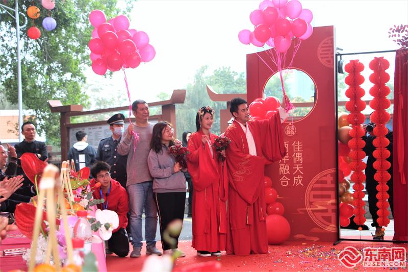 两岸伴侣分享幸福喜悦(东南网记者 李霖 摄) 搭建两岸青年友谊桥梁 开幕仪式上,两岸青年携手带来《心花开》《甜蜜蜜》《告白气球》等情歌串烧,深情演绎两岸新人从相识、相处到喜结连理的心动之旅,领导嘉宾为4对两岸伴侣送上象征幸福美满的姻缘绣球,将现场气氛推向高潮。 庙会遇佳节,两岸青年实现“双向奔赴”。作为全国青年发展型县域试点和全省唯一两岸融合发展县域集成改革试点区,目前,集美正着力打造青年发展友好型的中国式现代化城区。恰逢西方情人节,本届庙会引入台北霞城城隍庙民间“月老”的文化IP,组织“城内月老包月送对象”“脱单漂流瓶”“求婚告白加油站”等系列大型“相亲交友”活动,打开了解两岸月老文化的窗口,搭建两岸青年友谊的桥梁,全方位提升在集青年的归属感、获得感和幸福感。 “求婚告白加油站”响起一阵阵欢呼,开幕式当天,来自台湾台中的青年张群就手捧鲜花,单膝跪地,在“月老”的帮助下,向相恋多年的内蒙古姑娘深情告白。他说,求学期间,他和女友相识、相恋,到了不少城市。毕业后,两人被这里浓厚的创业氛围、优厚的政策打动,决定留在厦门,携手创业。 值得一提的是,2月14日情人节当晚18点,一场闽南古厝版本的“喜结良缘”单身情歌音乐派对将华丽登场,现场采用盲盒配对组CP、音乐不NG挑战等新颖形式满足年轻人交友需求,让有趣的灵魂相互碰撞,邂逅甜蜜恋爱。 |