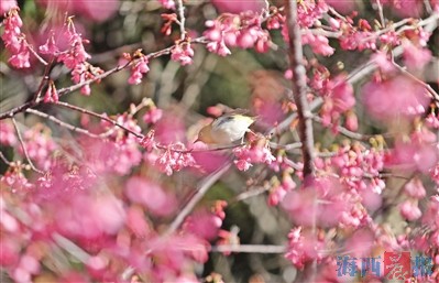 小鸟穿梭花丛间。记者 陈理杰 摄