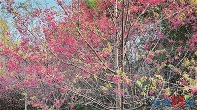 忠仑公园樱花似虹霞。记者 仇慧亮 摄