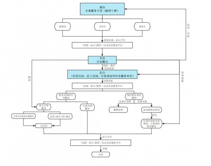 吴新奎指出,为深入学习贯彻党的二十大精神,进一步落实“深学争优、敢为争先、实干争效”行动要求,选派500名服务专员驻点开展企业、项目服务,通过服务专员履行“联络员、宣传员、服务员”的三大职能,实现服务企业面对面、政企沟通更直接、服务力量更强大,更加彰显社会主义制度的优越性,更加坚定企业稳增长、稳预期的信心,更好体现以经济建设为中心、以项目建设为抓手,提振开局之年加油干的精气神,打一场助企发展和项目建设的攻坚战,推动各项工作增动力、激活力、聚合力,为完成全年目标任务打下良好基础。 吴新奎强调,要提高政治站位,统一思想、统一行动。一要充分认识做好企业、项目服务是推动高质量发展的需要,要强化党委政府的服务和担当作为,引导市场主体强信心、稳定社会预期;支持企业敢拼敢干、敢闯敢试,创新发展、力争上游;对标跟进全市“4+4+6”产业发展规划,紧扣我区“5+1”产业规划、湖里区主导产业工作方案,推动高质量发展。二要充分认识做好企业、项目服务是优化营商环境的需要。要牢固树立“企业至上,服务发展”的理念,进一步聚焦市场主体关切,强化为市场主体服务,全力打造市场化法治化便利化营商环境,更大激发市场活力,增强发展内生动力。要把抓项目作为促发展的有力支撑,高起点谋划、高效率推进项目建设。强化挂图作战,构建区直各部门与街道、社区纵横协同的服务体系和推进机制,强化促建设、促开工、促出让、促前期、促策划五类项目清单,强化代建工作和加快前期两项重点,强化征迁和用地、资金、手续审批等三大保障,强化项目推进全过程督查、全流程服务,以项目工作高质量保障发展高质量。三要充分认识做好企业、项目服务是深入落实“深学争优、敢为争先、实干争效”行动的需要。通过驻点服务推动干部发扬斗争精神,增强斗争本领,依靠斗争服务企业、服务项目、服务发展;推动干部敢为、善为、有为,增强锐气、朝气、志气,打头阵、当先锋、做标杆;推动干部敢于担当,担苦、担难、担重、担险,勇挑大梁、多做贡献;推动干部敢于攻坚、突破重点、突破难点、突破堵点,加强历练、加强磨练,展现新作为、新气象,取得新进步、新成长。 吴新奎要求,要立足当好“三大员”,围绕企业和项目建设需求,提升服务能力和服务品质。一要认真学习领会习近平总书记在中央经济工作会议上关于《当前经济工作的几个重大问题》的重要讲话精神,深刻领会内涵,更好把握工作方向,以加强服务工作当中、实际工作当中的理论指导。二要掌握服务工作的基本方式方法,提高服务能力。要立足于苦练内功,熟练运用“亲清一家人”平台,熟悉包括市、区、火炬、自贸区等各级各类支持企业政策,特别是自己驻点服务企业可以适用的相关政策,以提高所提供的服务产品的“含金量”;要视企为家,全身心投入,用心用情,争做“服务标兵”;要加强与区企业服务中心的联动,充分依托后台支撑,开展服务工作,解决企业项目的问题困难。三要严守工作纪律,树立良好形象。区企业领导小组办公室、服务专员派出单位、组织和效能部门要加强监督、加强抽查,构建让企业更加信任、更加放心、更加安心的亲清政商关系。 会上,区企服办对驻点服务专员通用业务和“亲清一家人”一站式企业服务平台操作规程进行了培训。 湖里区企业、项目服务流程图