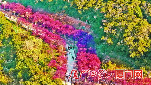今年春天,海沧鳌冠村樱花盛开,成为市民周末赏樱好去处。(记者 林铭鸿 摄) 坚持以人为本 推动绿化惠民 党的二十大报告指出,必须牢固树立和践行绿水青山就是金山银山的理念,站在人与自然和谐共生的高度谋划发展。 初春时节,乍暖还寒。在湖里区石头皮山公园,却是另一番热闹景象。园内绿意盎然,曲径通幽,不少市民在这里或休闲健身或登高赏景,或沐浴阳光或踏青遛娃。 “以前这里是一片脏乱无序的山坡,违章搭盖比较多。政府部门下大力气整治建设,拆违复绿,增加公园设施,为我们茶余饭后休闲锻炼提供了好场所。”正在公园游玩的市民张芸说。 厦门人多地少,寸土寸金,但是,厦门市委市政府坚持以人为本,舍得拿出好的地块、加大资金投入,用来建设公园绿地,让城市更加生态宜居,更好地满足市民对美好生活的向往。 上世纪八九十年代,厦门大力推进筼筜湖治理,关于湖心岛地块的开发,有不同的看法。有人说,这里是核心地段,用来开发房地产项目能产生显著收益,也有人说,这里应该建公园留给市民。最终,厦门将湖心岛确立为厦门市中心休闲性质的绿色开敞空间——白鹭洲公园。 如今的白鹭洲公园,优越的地理位置、良好的绿化景观与休闲文化设施,使其成为厦门城市的“磁心”和“绿肺”,更是厦门的“城市客厅”、“城市原点”和国家重点公园。2022年,新建健身环道,进一步提升了公园便民性。 厦门一以贯之坚持品质之美,均衡布局各类公园绿地。 在五缘湾片区生态修复与综合开发过程中,厦门坚持“把最好的环境留给自然、文化和百姓”的理念,打造了占地面积约71.7公顷的五缘湾湿地公园,吸引了“最美候鸟”——栗喉蜂虎等鸟类在此繁衍。 在厦门岛外,从滩涂上建起来的水上大观园——厦门园博苑,既是国家4A级旅游景区,也是国家重点公园和国家城市湿地公园,自2021年5月1日起免费向市民游客开放。今年3月5日,位于园博苑内的集美儿童公园开启试运营,市民户外亲子游再添一个好去处。 马銮湾生态三岛公园,分别以市花岛(三角梅)、市树岛(凤凰木)和市鸟岛(白鹭)命名。环东海域滨海旅游浪漫线,已建成约33公里的带状公园,为新城带来大量的活力。 在城市高强度开发的同时,厦门不断探索公园绿地建设新路径:通过梳理街头绿地和闲散的公共空间、边角地块,“见缝插绿”建成近200个口袋公园,同时,融入文化、体育等元素,让公园绿地“养眼养脚又养心”;建成200多公里的健康步道,像串珠般,串起山海湖等景观资源,进一步满足市民对高品质健康生活的需求。