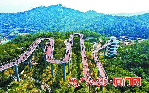 今年新开放的厦门山海健康步道林海线二期,一路绿意盎然。 牢记殷殷嘱托 成就绿美之城 “现在的厦门,满眼是绿,四季有花,整座城市像是一座大花园,与改革开放前比起来,简直是天壤之别。”2月28日,站在山海健康步道云海线狐尾山观景平台,68岁的陈金海一边欣赏着眼前山水交融、城景相依的景色,一边用手机不停拍照。 陈金海是土生土长的厦门人,在他的记忆中,改革开放前的厦门,市区没几座公园,到处可见黄土裸露,岛内的几座山,也被人们乱砍滥伐成了“瘌痢头”。 上世纪80年代,习近平总书记在厦门工作期间,注意到乱砍滥伐现象后,迅速作出部署,及时遏制了乱象。他说:“我来自北方,对厦门的一草一石都感到是很珍贵的。” 习近平总书记在厦门工作期间还主持编制《1985-2000年厦门经济社会发展战略》,明确提出“创造良好的生态环境,建设优美、清洁、文明的海港风景城市”。厦门城市园林绿化工作紧紧围绕“建设良好生态环境”这一中心任务展开各项建设,按照《1985-2000年厦门经济社会发展战略》要求,完善规划、加大投入、创新机制、强化措施、突出重点、整体推进,既加大建设力度,增加绿地面积,提高设计和建设水平,又逐步提高原有绿地的档次水平和提高养护管理水平,取得了显著成效。 殷殷嘱托,持续指明前进方向。2002年,时任福建省委副书记、省长习近平同志到厦门调研时,勉励厦门要“成为生态省建设的排头兵”。2017年,习近平总书记在金砖厦门会晤时盛赞“今天的厦门已经发展成一座高素质的创新创业之城”“今天的厦门也是一座高颜值的生态花园之城,人与自然和谐共生。” 厦门久久为功开展园林绿化建设,加大生态修复和保护力度,先后成功创建国家园林城市、国家森林城市、国家生态园林城市,40多年来,建成区绿化覆盖率从13%提升到45.65%,人均公园绿地面积从1.79平方米提升到14.84平方米。 “抬头仰望是清新的蓝,环顾四周是怡人的绿”,如今的厦门,四季常青、四季有花、推窗望绿、移步异景。180多座公园星罗棋布、各逞娇媚,16800多公顷园林绿地多彩多姿、生机盎然。绿色,已经成为厦门的最美底色。