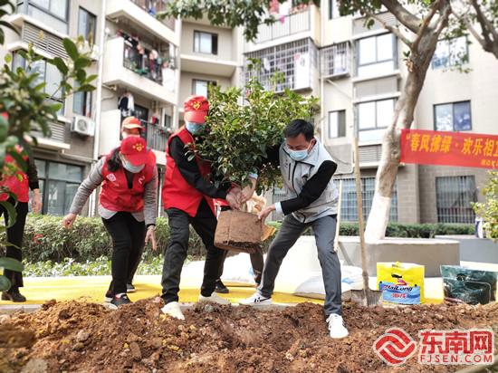 种树(湖边社区供图) 东南网3月15日报道(通讯员 黄晓霞)3月12日是一年一度的植树节,为了培养居民“爱绿、植绿、护绿” 的环保意识,引导居民积极参与环境保护,近日,厦门市湖里区金山街道湖边社区新时代文明实践站、湖里区开心社工服务中心分别携手厦门市特房物业服务有限公司山水新座尚座管理处、厦门天地和诚物业集团有限公司,以三月植树节为契机,在特房·山水尚座、湖边花园A区组织开展“春风拂绿·欢乐相宜”湖边社区植树节主题公益活动。 3月12日上午,来自特房·山水尚座十余对亲子家庭一起在小区里种树。社工带领亲子们以契合当下时节的“桃花朵朵开”热身小游戏将氛围活跃起来,同时植入万物复苏的美好寓意。 每个家庭栽种一棵小树,许下一个爱护环境的心愿,绿化小区家园。大家共同为小树苗松土、挖坑、栽种、埋土,并挂上小树认养牌。亲子们有的拿铁锹,有的拿锄头挖坑,个个忙得不亦乐乎。