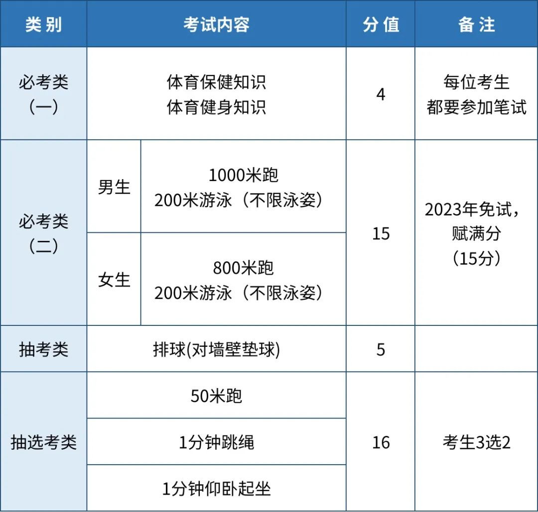 考点设置 按照相对集中、照顾偏远学校、有利于考试工作顺利进行为原则设置考点。 考区统筹体育考试考点的设置,符合设置条件拟新增的考点,应向考区提出书面申请,由考区初审后报市招考中心。 未设置为考点的学校的考生及社会报名点的考生在考区指定的考点参加考试。 免考、缓考、补考 一、免考 1.因身体残疾丧失运动能力或随班就读的考生,以及经二级以上医院证明患有不适合剧烈运动疾病的考生,可以申请技能考试免考。 2.对考前因新冠病毒感染,认为不能参加现场测试的考生,可申请免考。 免考获批的考生需参加必考类(一)考试,不参与技能考试。 监护人和考生报名时不得隐瞒既往病史,确患有不适合剧烈运动疾病的,应提出免考申请,考生本人及监护人应对考生自身身体安全负责。 1. 提交材料。中招报名期间考生及监护人填写《厦门市2023年中招体育技能考试免考申请表》并附相关材料,提交给报名点(已办理借考手续的考生向借入校申请)。 2. 初核公示。报名点对申请材料进行初步审核,并在考生所在校公示3天,公示无异议后3月18日前录入中招信息管理系统,并将考生的免考申请及相关材料提交,名单汇总上交考区。在3月18日后中招信息管理系统将不再向报名点开放免考申请。自3月18日到中招体育技能测试结束前,因意外伤害导致无法参加技能考试者,经市区招生考试机构批准后方可补报。 3. 复审复检。考区于3月20日前完成材料复审和系统确认后,市教育事务受理中心保健科于3月21日开始组织审核,审核结果统一录入到中招信息管理系统。 4. 申请身体素质与运动技能测试(以下简称“技能考试”)免考考生的等级认定及成绩计算。 免考一类考生符合以下任一项情况即可认定: ① 持有民政部门出具的残疾证书或证明; ② 因智力残疾或肢体残疾办理随班就读的考生,提交随班就读审批表或花名册。 ③ 初三阶段因参加市教育局组织的体育赛事中意外受伤不能参加当年体育中考的考生,由学校提供相关证明申请,经市教育局体卫艺处审核确认的。其技能考试成绩必考类(二)以满分记,抽考和抽选考类以本年度所有参加考试考生的平均分(保留两位小数)计算。 除免考一类考生外,其他经申请获准免考的考生,其技能考试成绩必考类(二)以满分记,抽考和抽选考类以本年度所有参加考试的考生平均分的80%(保留两位小数)计算。 5. 复考申请。获准免考的考生,如康复、身体条件确实可以参加体育技能考试的,应由考生本人和监护人向报名点学校(或借入校)书面申请,并附医学检验相关证明。报名点应根据考生在校参加体育锻炼等方面情况,提出审核意见,报名点审核同意后将以上材料提交,经考区复核,由保健科再复审。符合考试条件的考生安排在全市统一补考的时间考试,相关考点应做好考生参加体育考试相关预案。 二、缓考 考生因临时伤、病(含女生例假、出现发热、干咳、乏力或有其他传染病等异常情况的),不能按时参加体育技能考试的,可于考试前一天向报名点提出申请,经报名点核实后准予缓考。 考生只允许申请一次缓考,身体恢复后可提出申请参加考试。未能按时参加考试且不属于免考对象的缓考考生,其技能考试成绩按缺考处理。 三、补考 考试过程中考生因偶发事件无法正常完成考试,经考生本人申请、裁判组及考点主考审核批准,可予以补考,其已考项目成绩无效,补考时间安排在全市统一补考的时间和地点进行。 |