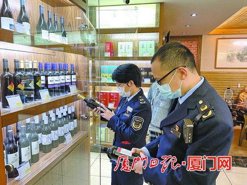 执法人员突击检查集美区酒类销售单位 商家台账均符合要求 标签标识管理较规范 发现个别问题现场督促整改