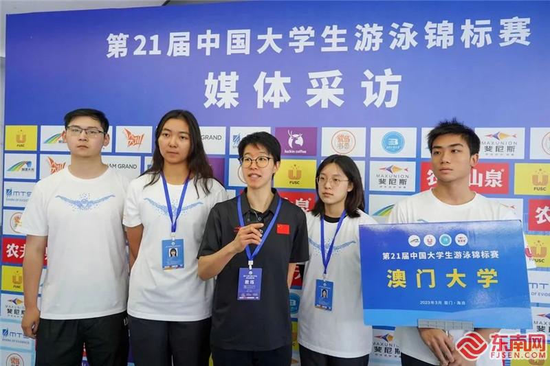 澳门大学游泳队组队参与本届赛事。(海沧区融媒体中心供图) 后浪奔涌搏击,青春川流不息,对于比赛,参赛的游泳健儿们都有自己的期待。来自中山大学游泳队的李永威有着近20年的游泳经验,这次比赛他参加了自由泳项目。李永威说:“此前一直都在训练,少有赛事来检验一下训练成果,对于这次比赛我们期待了很久,希望自己能有不错的发挥和突破。” 据澳门大学游泳队的带队教练袁静汶介绍,自去年9月起,校队就开始着手筹备参赛,此次赛事恰逢考试期,“队员们兼顾学习与训练,都十分努力,对于比赛,尽力就好,我相信他们!” “完全人格,首在体育。这是我们北京大学的体育育人理念。希望通过这次比赛表达我们这种体育精神,运动员们都能发挥最好的水平。”北京大学游泳队带队教练廉昌学表示,北大的游泳队在高校中一直处于较为领先的位置,这次比赛队员们都是奔着金牌来的,力求能突破以往的成绩。 “厦门的气候宜人,对我这样的南方人来说,更利于比赛的发挥。这次我参加了两个个人项目,希望能拿到前三,更好的是冲刺金牌。”从北京到厦门海沧,北京体育大学游泳队队员金振宇与队友们感受到了厦门的热情与浪漫。 |