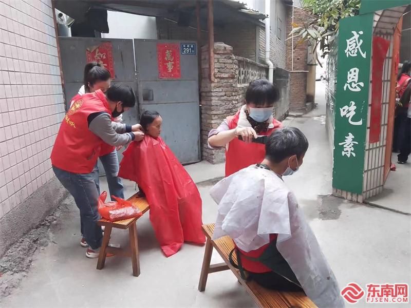 卢妈妈爱心队为社区老人提供义剪服务(集美·诚毅志愿者联盟供图) 聚焦需求 齐奏服务群众协奏曲 雷锋精神、人人可学,奉献爱心,处处可为。前一阵子,苏阿伯找到深青村五社联动项目社工,想为精神残疾二级、体重达200多斤的儿子找到一张结实的床。经过多番寻找,社工们不仅从爱欣老年公寓免费获得了铁架床,还帮助老人将儿子送医就诊、稳定病情。 这样暖心的故事不断在集美上演。以群众需求为导向,立足自身专业特长,集美区各志愿服务队伍因地制宜组织开展各类服务群众的志愿服务活动,用实际行动书写新时代雷锋故事。 不久前,集美区卢妈妈爱心队刚刚迎来八周年庆。现场,集美·诚毅志愿者联盟送上一面绣有“敬老助人扬美德,无私奉献暖民心”的锦旗,感谢志愿者们的无私付出。正如锦旗上所说,一直以来,卢妈妈爱心队在为老服务领域“精耕细作”,通过长期不懈地面对面服务,化身困难老人的“贴心人”。 走访独居孤寡老人,为生病老人送药,进社区提供义剪服务……关爱银龄不断档,暖心奉献不停歇。3月,卢妈妈爱心队持续对接需求,马不停蹄地开展了7场活动,将雷锋精神化作春雨,滋润老人心田。 学习雷锋精神,就要学习雷锋全心全意为人民服务的精神。连日来,集美区禁毒协会志愿者们进景区、企业开展禁毒宣传,普及禁毒知识,增强群众防毒、拒毒的意识;集美区各基层医疗卫生机构医务人员在繁忙的医疗工作之余,积极开展十余场义诊活动,送医进社区、入小区,将服务送到群众家门口,用医者仁心诠释新时代雷锋精神。