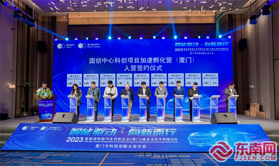 国创中心科创项目加速孵化营(厦门)入营签约仪式(主办方供图) 技术高峰论坛现场,国内外知名专家围绕汽车行业的新发展与前景、法雷奥对蓬勃发展的中国新能源汽车市场的战略规划和布局、新能源汽车动力电池静脉产业链的重要性、高能固态锂电池用关键材料、日本新能源汽车产业链面临的问题等前沿热点技术进行了深入分享,共同探讨新能源汽车发展的新趋势及新挑战,同时搭建国际化交流合作平台,以促进国内国际新能源汽车创新思想、技术、产业、应用、人才的集聚和落地。 据主办方相关负责人介绍,本次峰会聚焦前沿思想,碰撞智慧火花,加快构建新能源汽车行业创新生态,既是贯彻新发展理念、构建新发展格局、推动高质量发展的具体行动,加快构建千亿新能源汽车生态集群,也是围绕厦门市科技创新大会以“实施科技创新引领工程,加快推进发展动能转换”为主题,系统谋划新能源智能汽车未来科技创新发展的目标、路径。 |