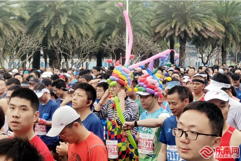 头戴气球装扮成“小丑”的跑者(东南网记者 刘玮 摄)