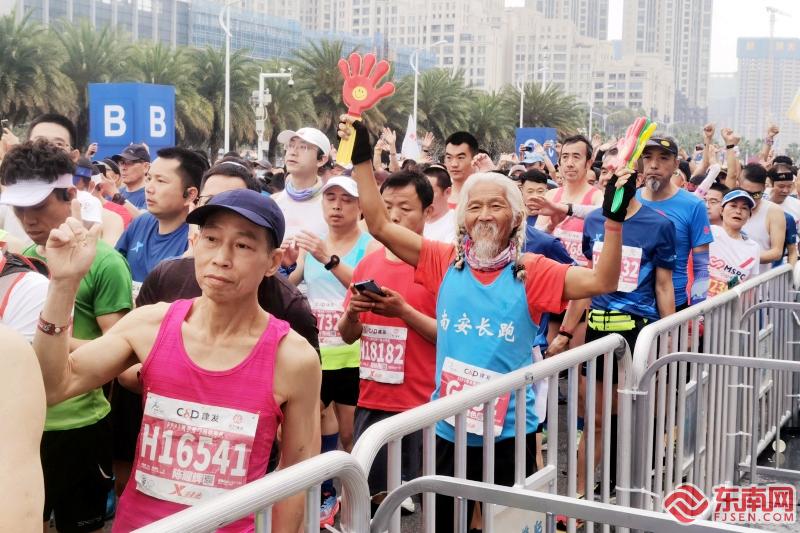 装束特别的老年人跑者(东南网记者 刘玮 摄)