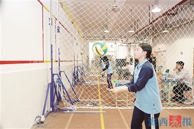 厦门体育中考昨日开考 对墙垫球“首秀”