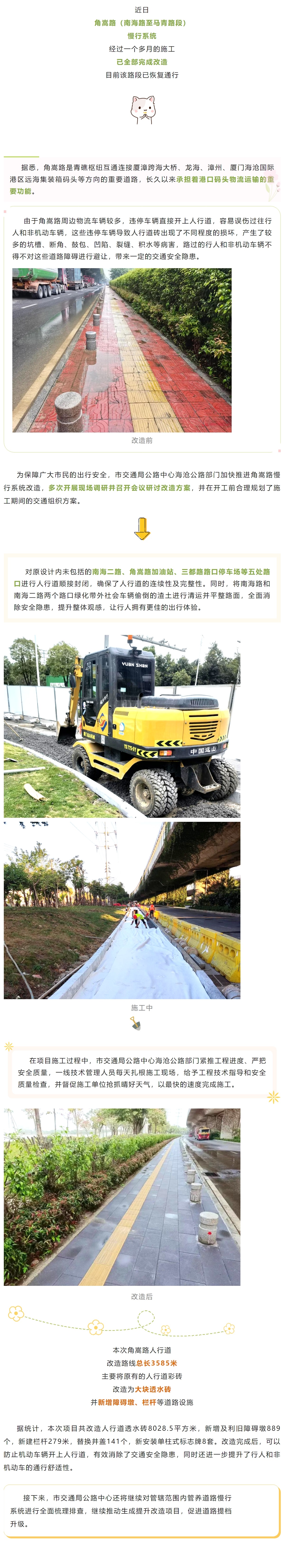恢复通行!海沧区角嵩路慢行系统已全部完成改造