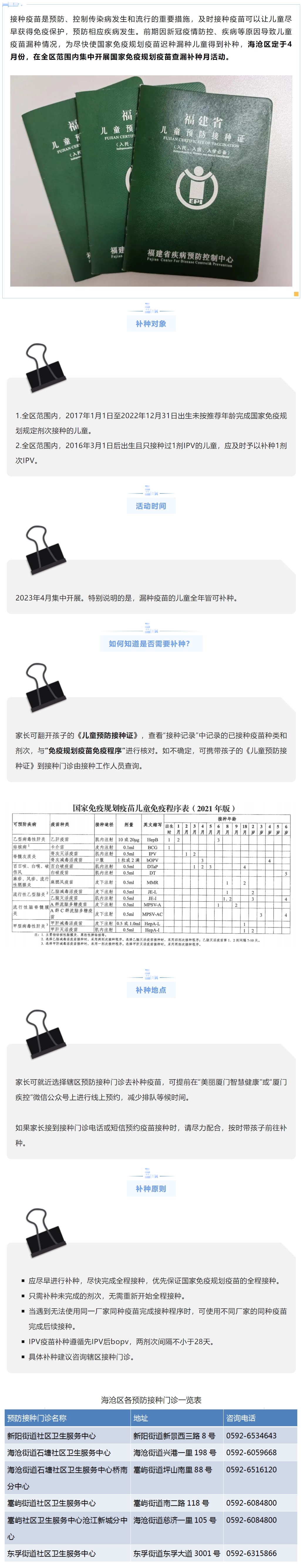海沧区定于4月在全区开展国家免疫规划疫苗查漏补种月活动