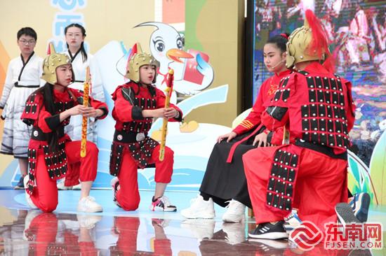 课本剧《草船借箭》(主办方供图) 东南网4月23日报道(记者 夏菁)4月21日下午,由厦门市翔安区教育局主办,厦门市翔安区第二实验小学承办,厦门教师朗诵艺术团协办的“开卷品书香,诵读悦未来”暨2023年世界读书日经典诵读专场活动在翔安第二实验小学举行。 为了更好地贯彻落实《全国青少年学生读书行动实施方案》,翔安区第二实验小学坚持推动“书香校园”的建设,2023年读书节以“开卷品书香,诵读悦未来”为主题,在世界读书日来临之际,开展了大型的全校性经典诵读展演。 此次展演,以学校朗诵社团的孩子诵读《声律启蒙》开篇,带领全校师生齐诵,充满韵律的和谐之声在校园荡漾。《我是小书虫》读书分享会、《牙齿大街的新鲜事》绘本剧、课本剧《草船借箭》和《三月桃花水》美文齐诵,充分展示和演绎了学生在课内与课外的阅读收获。《宁静的海洋》节目里,孩子们用自己的方式,吟诵咏叹,走进古代学者的世界。 本次活动邀请了厦门市教师朗诵艺术团的老师王欢和楚风。王欢为孩子们倾情演绎了邓颖超写给她最挚爱的丈夫周恩来的《海棠花祭》,让全场动容。楚风则带来了千古流传脍炙人口的诗篇《将进酒》,在孩子们心中塑造了一位有血有肉的李白形象。