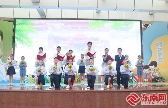 现场互动(主办方供图) 今年正值翔安区建立20年之际,师生同台倾情朗诵《翔安,我们爱你》,歌颂了美丽的家乡翔安。集美大学诚毅学院的大学生们与学校孩子们“大手拉小手”,他们演绎的《读中国》,激励着师生筑梦新时代,一起向未来。整场活动还穿插了阅读知识问答、飞花令,与场下学生开展互动。孩子们频频举手参与,现场十分热闹。 本次活动还得到了集美大学诚毅学院青年文艺志愿队的倾情帮助。他们将美育工作和实践活动相结合,在课余时间不辞辛劳地带领孩子们排练节目,为活动的成功举办贡献志愿力量。 值得一提的是,此前,翔安区第二实验小学已开展了系列活动,如低年级“阅享书香,绘说绘演”绘本剧比赛,中年级“书香为伴,美文齐诵”集体诵读比赛,五年级的“戏说经典,品味人生”课本剧展示,六年级“辩以启思,论以明志”辩论赛等,在全校营造了师生爱读书、读好书、善读书的浓厚氛围。 |