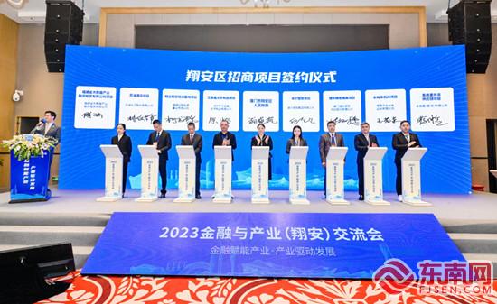 2023金融与产业(翔安)交流会现场(东南网记者 夏菁 摄) 东南网4月27日报道(记者 夏菁 通讯员 叶晓菲)4月27日,厦门市翔安区举办以“金融赋能产业、产业驱动发展”为主题的2023金融与产业(翔安)交流会,展示翔安区金融产业发展成果和优厚的产业招商政策。 本次交流会上,“翔安区企业金融服务中心”正式成立,搭建银行、券商、投资基金等金融机构与企业的一站式综合服务平台。现场还进行了签约仪式,共有21个项目成功落地或增资扩产。 政策宣讲与主题演讲“干货”满满 作为厦门最年轻的行政区,20岁的翔安风华正茂。翔安区委书记黄鹤麟在致辞中总体介绍了翔安发展情况,建区后,翔安地区生产总值从22.4亿元增长到2022年的887.14亿元,年均增幅17.4%;连续多年位居全省各县(市、区)第一。 据介绍,翔安区拥有2条五百亿级产业链,平板显示、半导体和集成电路两条产业链产值均占据全市的“半壁江山”,是全省最大的光电产业基地、厦门重要的先进制造业基地。在金融发展与扶持创新企业上,翔安区2019年成立区级产业引导基金,持续加强产融对接,有力推动产业高质量发展。目前,区产业引导基金参股产业子基金9支、总规模196.23亿元,累计入库并落地项目103个、总规模约300亿元,为翔安高质量发展注入了更多“新鲜血液”。 会上,翔安区区长李毅重点介绍了翔安区促进金融招商、帮助企业融资,推动企业上市等方面出台的政策情况。 活动现场,中证金融研究院研究员邵宇、上交所南方中心区域主任曹超、深交所市场发展部执行经理邓志钦,以及北交所华南区域副首席、厦门基地负责人孙财乐4位金融界与交易所代表为与会嘉宾带来了“干货”满满的主题演讲。
