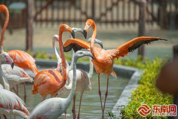 火烈鸟在户外互动。(主办方供图) 东南网4月28日报道(记者 邹玒 通讯员 邱嘉伟)28日,在厦门灵玲动物王国内,25只火烈鸟走出临时笼舍,入住园区为其特别打造的340平方米大场馆。 火烈鸟是巴哈马国宝。据了解,进驻园区的火烈鸟家族是由两个独立的“家庭”组成的,分别是4只美洲红鹳及21只大红鹳。其中,中美洲红鹳家庭成员身披“粉色外衣”,羽毛光泽明艳,就像一团熊熊燃烧的烈火。大红鹳则穿上了白色外套,仅在翅羽上抹上一点玫瑰浅粉,漫步时诸色相衬,非常艳丽。 25只乔迁新居的火烈鸟目前身体状况健康。野外火烈鸟以小型鱼、虾、藻类等为食,动物园专门建立了一套完善的饲养和管理体系,确保它们的健康和生活质量。 火烈鸟馆呈条状分布,环境模拟野外湿地,占地约340平方米,堪比宽敞舒适的“山水别墅”。场馆内依据火烈鸟的生活习惯,设有草坪、沙洲、遮阳棚、引水渠、水域。场馆被玻璃房间分割成左右两个区域,让火烈鸟可在室内遮阳避雨以及休憩,游客则可以透过玻璃观察、了解火烈鸟;室外场馆的绿地被水域分割成或大或小的“湿地浅滩”供火烈鸟自由活动。 据园方介绍,后续他们将加强观众教育和解说服务,让游客更好地了解火烈鸟,增进对动物世界的认识和保护意识。 |