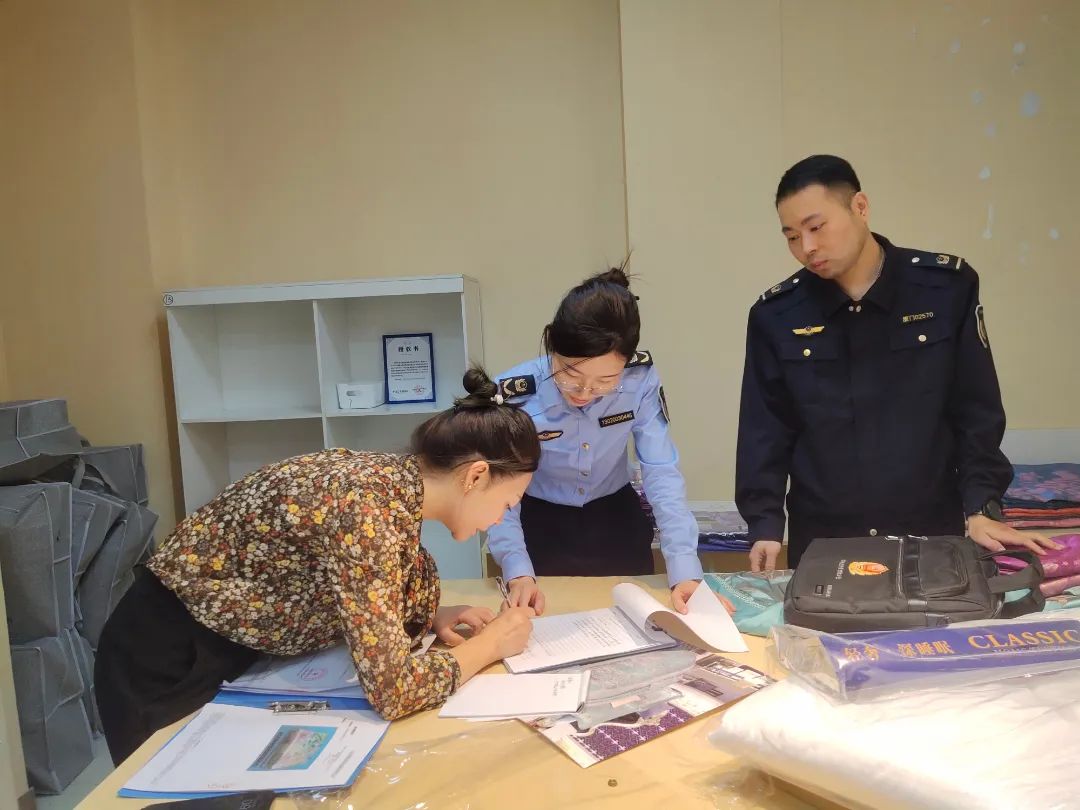 “五一”假期即将到来,消费进入高峰期,为给市民、游客营造放心舒心的消费环境,湖里区市场监督管理局开展行动,督促商家诚信经营,全力维护湖里市场秩序。 某购物店涉嫌销售“三无”产品 4月21日,湖里区市场监督管理局殿前所联合厦门市文化市场综合执法支队开展节前专项检查。 存在问题 在对中国(福建)自由贸易试验区厦门片区高崎道某购物店的经营场所进行检查时,执法人员现场发现商家展厅摆放着未标明品名、生产厂商名称与地址且未见产品合格证明的床上用品四件套。