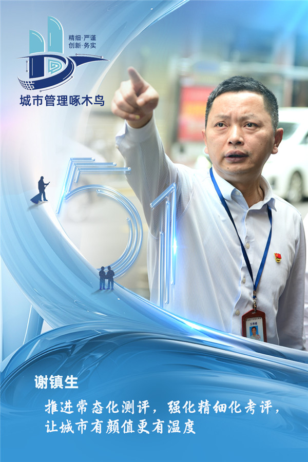 2014年转业到城管考评队伍以来,谢镇生从零开始、刻苦钻研业务,迅速成长为一名“考评标兵”。