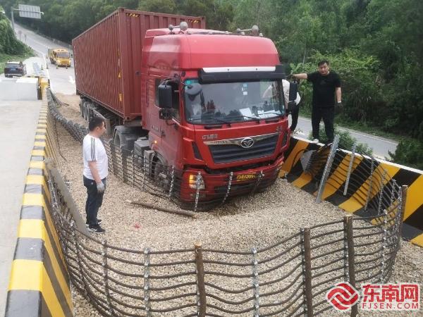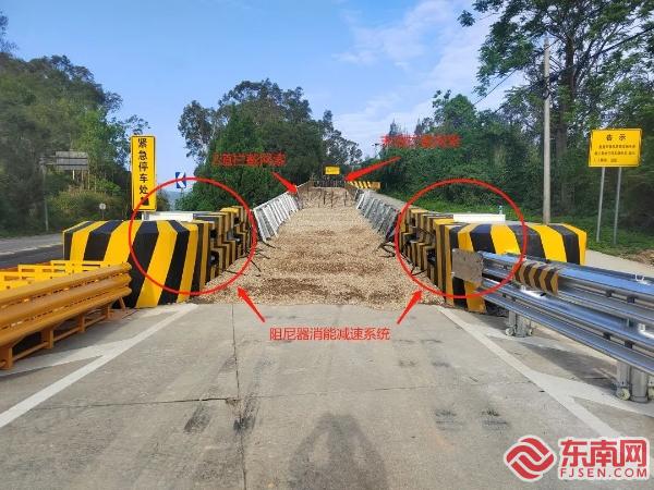 紧急停车处的网索拦截系统将货车拦停(厦门公路供图)