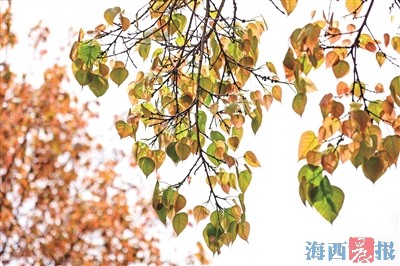 菩提树的树叶色彩丰富。记者 陈理杰 摄
