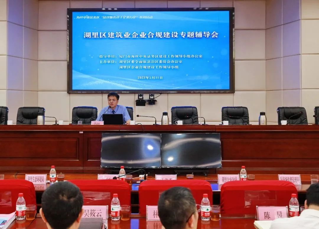 全方位推进合规建设 亲清护企显成效 中心成立的背后,是湖里区一项项亲清护企的务实之策,是一步一个脚印优化营商环境的不懈努力。 一起来看看—— 搭建平台促进融合发展 回溯至2021年底,区检察院化解辖区某建筑企业涉行政处罚争议,以建筑行业行政监管为切入点,引智高校专家,组织有关行政部门、行业协会和企业代表,共商柔性执法,并搭建了“检府校企”融合发展的企业合规特色研究平台。 出台政策成立工作组 在湖里区委区政府的高度重视下,今年1月,湖里区出台了《关于助力企业合规建设 亲清护企服务发展若干措施》。区企业合规建设工作领导小组随之成立,20个成员单位涵盖了党委、政府、司法部门。 刑事合规补强协作链条 湖里区检察院针对涉案的小微企业,探索“简式合规模式”,通过联合区法院、湖里公安分局,建立涉案企业合规工作机制,实现公检法各项工作顺畅高效衔接,着力推进企业合规刑事诉讼全流程适用。 此外,区检察院与区司法局建立互动协作机制,依法优化涉企社矫对象外出管理制度,为企业正常生产经营合理“松绑”。 行政合规推进执法有度 行政合规专项工作组系统性梳理、汇编厦门市29家行政执法单位落实“四张清单”制度事项共计1180项,并刻盘分发给企业,让企业知悉政策、明确权益;又进一步促进行政机关“在阳光下”执法,让行政执法有尺度更有温度。 行业指导聚焦重点突破 行业合规指导专项工作组与建筑行业协会开展座谈3次,充分运用《企业合规体系构建指引》《合规要点正负面清单》等8份指导性材料,精准加强指导;根据建筑工程生命周期和重点环节,制作打钩式表格,帮助企业自查79个刑事合规风险点、221个行政合规风险点。 工作组还为4家建筑业龙头企业提供量身定制合规方案,指导1家大型民营集团公司成立企业合规建设工作领导小组,为辖区15家大中型、小微型企业提供合规指导,以重点突破带动全局提升。 指导中心开讲合规“第一课”
