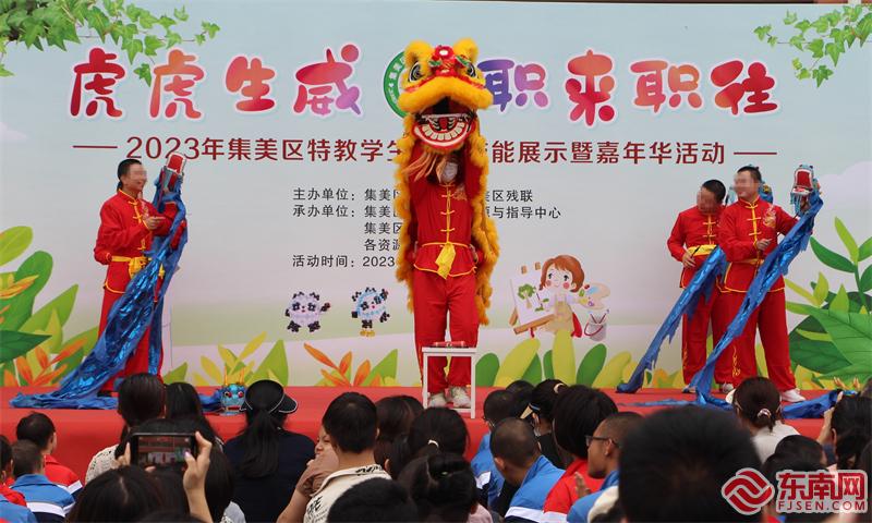 集美区特殊教育学校师生携手送上舞龙舞狮表演(东南网记者 李霖 摄)