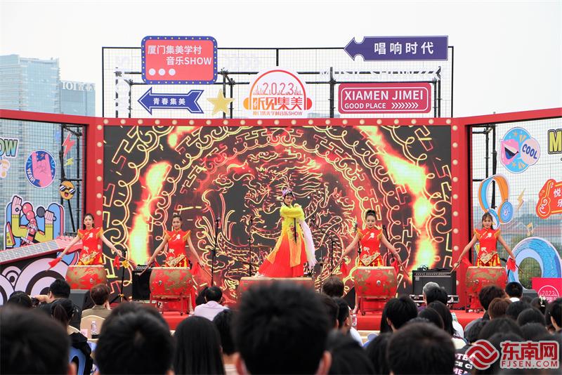 开场节目《鼓舞飞扬》(东南网记者 李霖 摄) 人文集美焕发新魅力和新风采 据悉,全新升级后的2023年集美学村音乐SHOW将为更多音乐人、学子提供展示才华的追梦舞台,全面展现新时代、新征程下新青年的精神风貌和使命担当,为广大群众提供更有温度、更有力量的音乐体验和文化服务,深化学村文化内涵,持续打造集美学村文化IP,让人文集美在新时代焕发出新的魅力和新风采,促进“产城学人”深度融合,加快推进“人文集美”建设提升工作,助力集美构建“青年发展友好型城区”、打造“集美中央活力区”,助力厦门加快打造“文化中心、艺术之城、音乐之岛”。 相关负责人表示,以集美学村音乐SHOW为载体,集美区创新思想教育方式,发挥集美辖区大中专院校众多、艺术土壤丰厚、人才资源丰富、链接业界大咖等优质资源,持续发掘优秀音乐人才、产出优质原创作品,引导青年学子创作、演绎优秀作品,在先进文化的滋养中成长,培育担当民族复兴大任的时代新人。 |