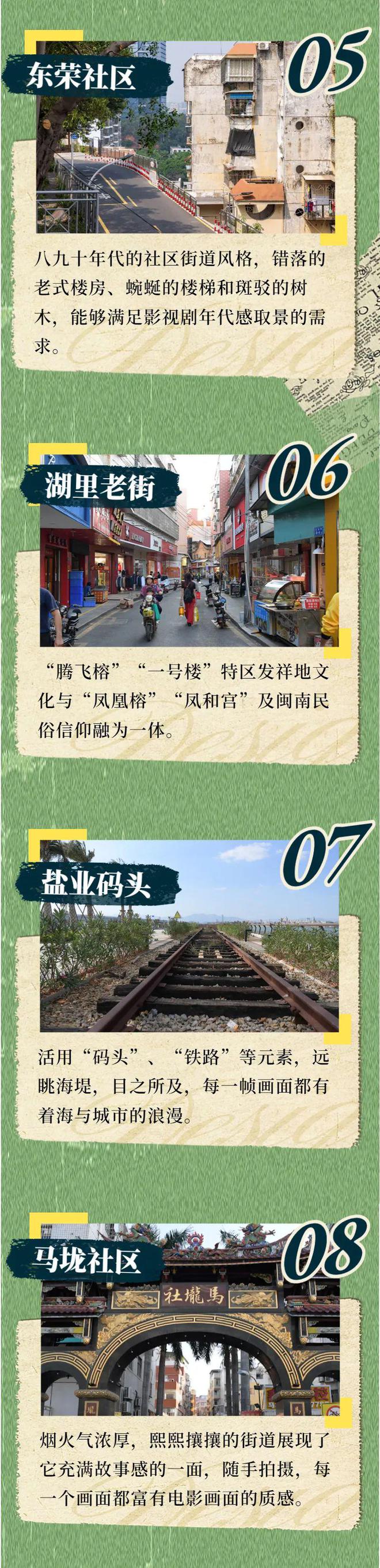 湖里区不断健全影视剧协拍机制 指导打造一站式制片服务平台 畅通影视剧拍摄公共资源协调机制 让湖里区多彩多元的取景地 有更多在荧幕和荧屏上展示的机会 也释放着湖里新“影”力 湖里文化地图小程序 为剧组提供备案及协拍函申报、 湖里热门取景地推荐 及影视拍摄服务供应商等服务 剧组需要的资讯轻轻松松在线上Get