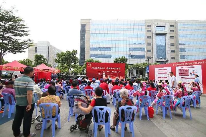 本次活动在街道、社区的积极参与下,通过丰富多彩的文艺汇演、《反有组织犯罪法》相关知识有奖问答、现场宣传解答等形式,向现场群众传达了扫黑除恶的打击重点、举报方式等相关信息,提高广大居民识别黑恶势力犯罪能力,充分展示我区常态化扫黑除恶斗争开展以来所取得的战果,持续营造扫黑除恶斗争人人知晓、人人参与的生动局面。 宣传节目精彩纷呈 不少由当地群众创作演绎