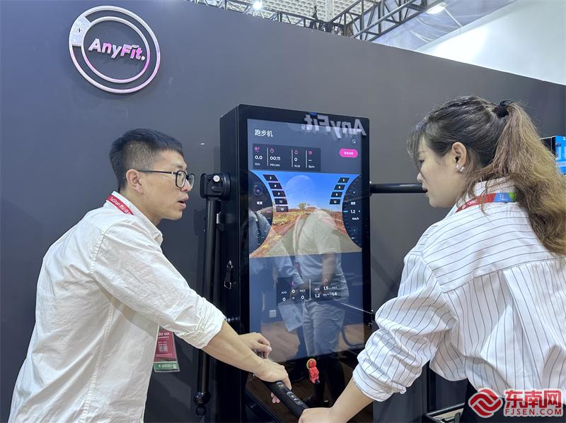 外籍客商现场体验健身设备。东南网记者 文洁 摄 主办方表示,加强中国体育用品制造业与服务业的融合发展,是本届展会的一大核心命题。来自北京、河北、贵州、内蒙古、海南、厦门、成都等多个省、市单位代表齐聚2023中国体博会,谋求“体育+文化”“体育+旅游”“体育+医疗”“体育+教育”等更多“体育+”业态的合作可能性。 值得一提的是,与往届按照“产品类别”进行细分展示不同,本届展会以“一体化解决方案”集成体的方式,依据全民健身的实际场景予以复刻,有效地推动了行业从单一产品制造向产品制造和服务“双轮驱动”模式的过渡。 记者在现场注意到,“数字化”展品层出不穷,囊括了健身器材、场馆设施设备、运动地材原材料及配件、运动服饰、康体器械、各类体育运动装备等多个品类,其中包括不少依托于人工智能技术,与现场观众进行人机交互的“黑科技”产品,比如智能体测仪、智能健身镜、智能跑步机、智能动感单车、VR可穿戴设备等。AI对于现代化体育制造业的重塑,在本届展会上得到了更为清晰地展现。